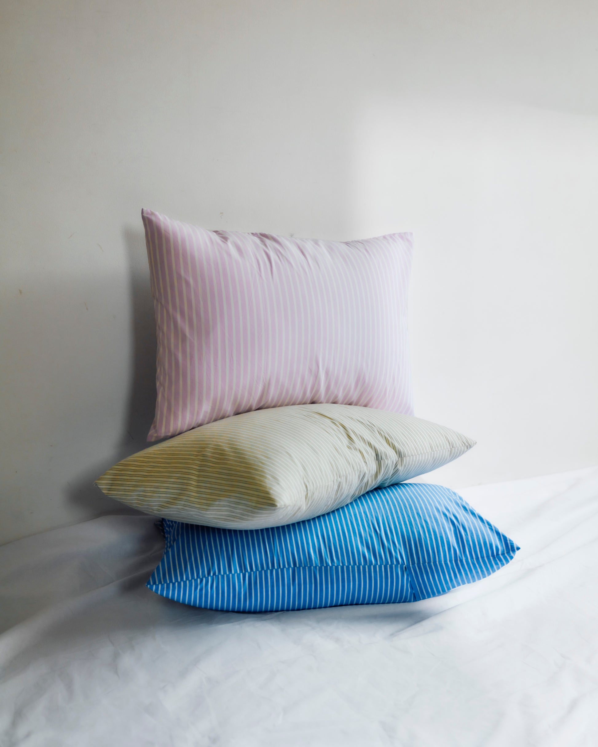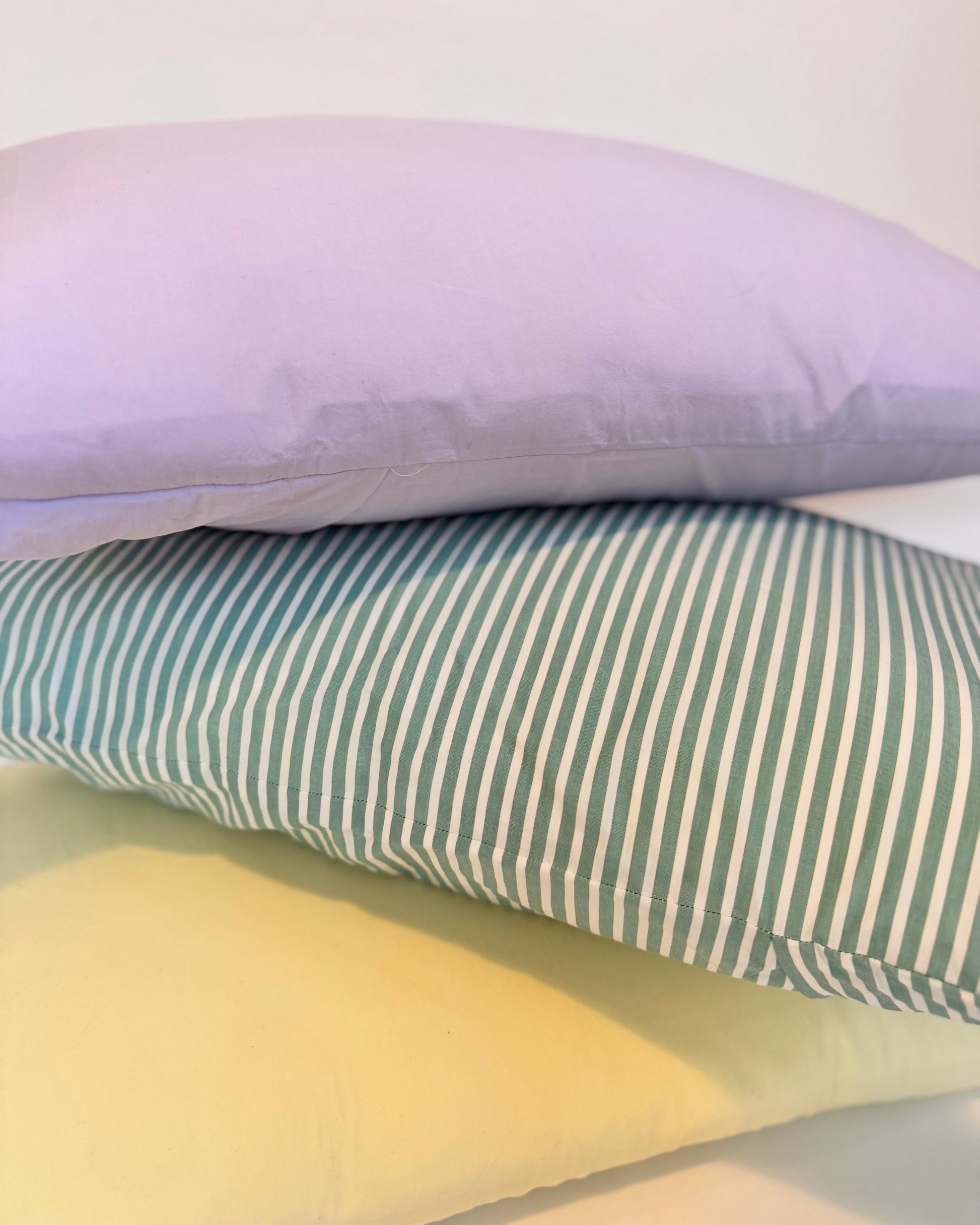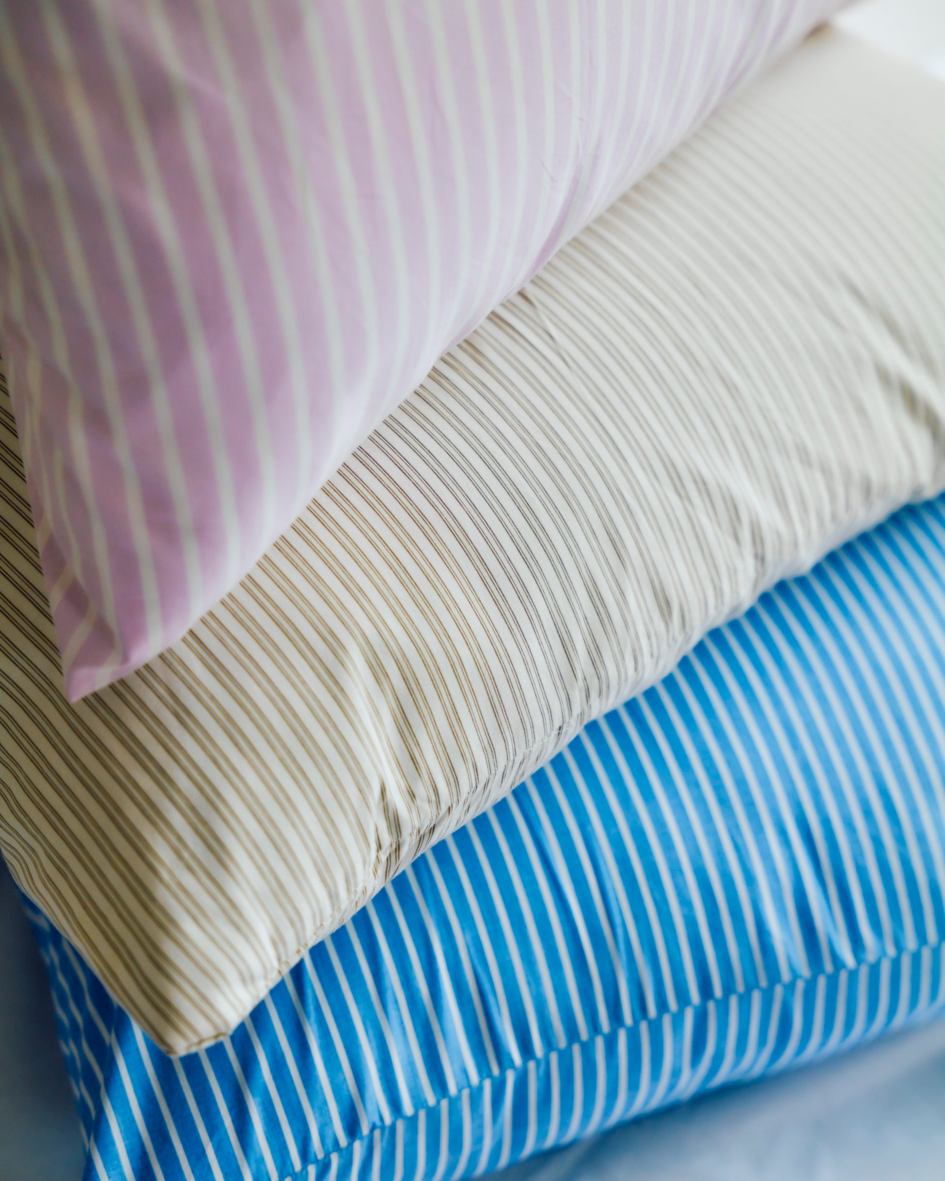 カバーはスリープウェアと同素材のオーガニックコットン原料の国内生産された生地で作られており、肌触りや使い心地を優先するためにファスナーやボタンなどは使用せず、生地の重なりだけで作られた設計です。