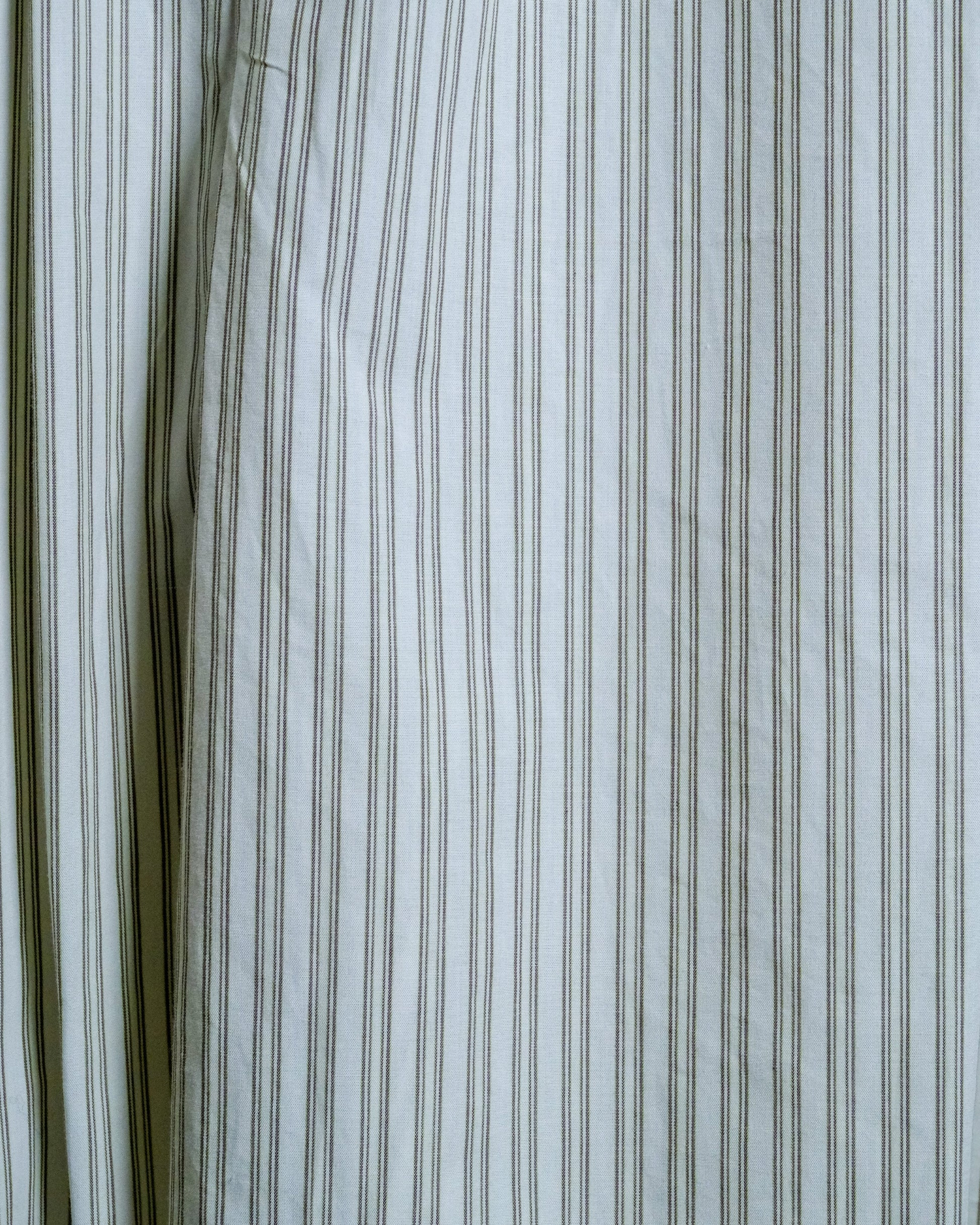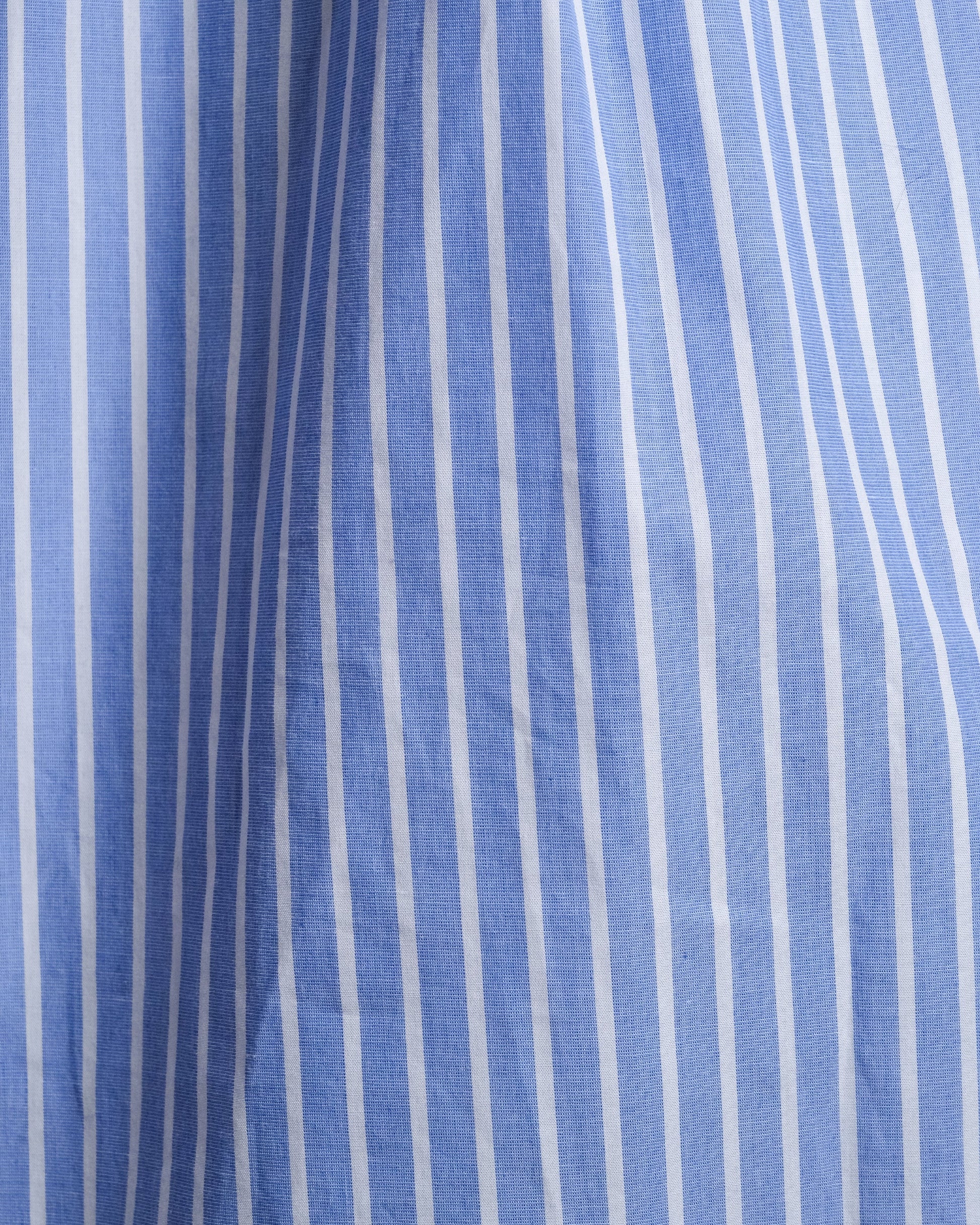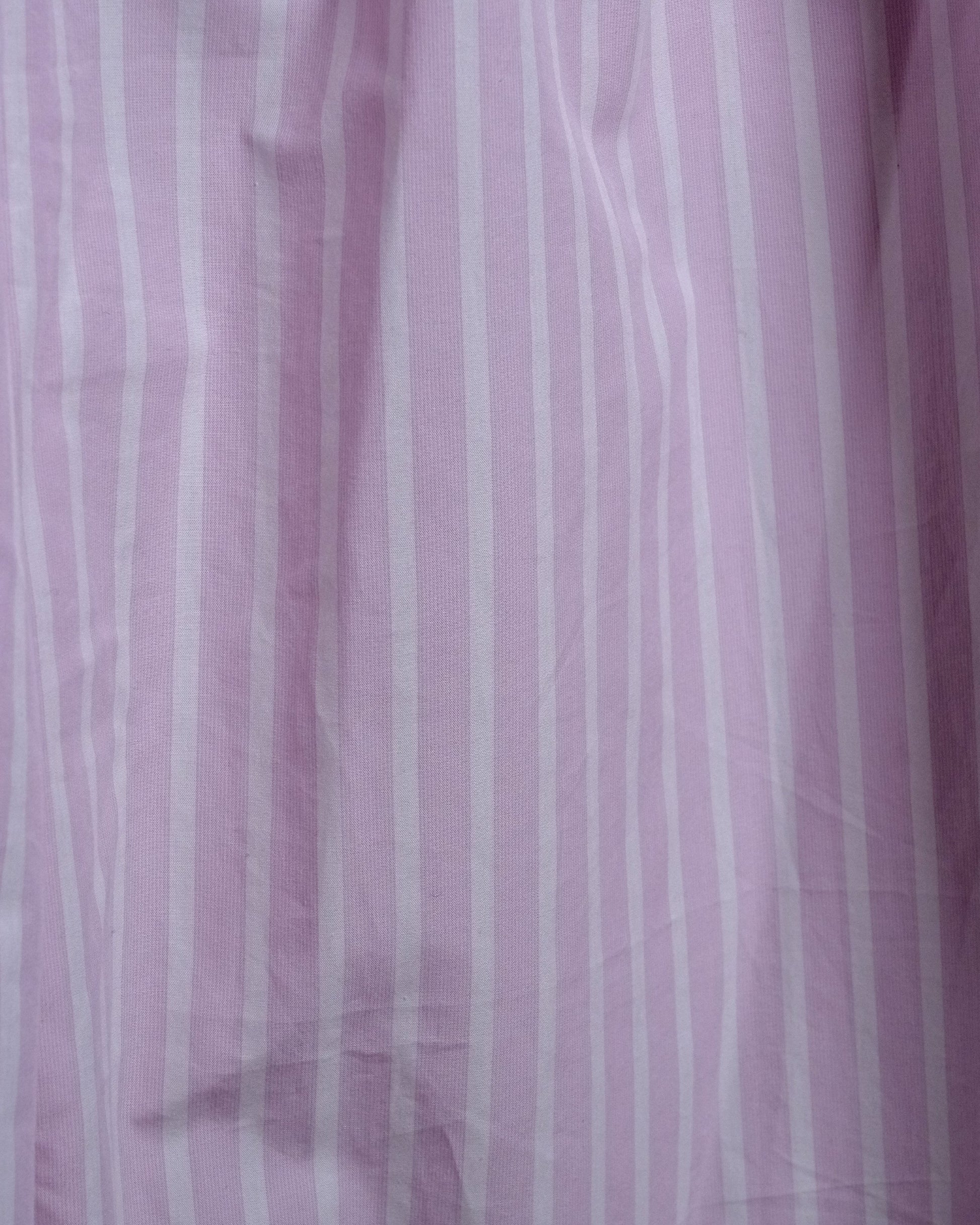 通常の60/-ストライプ素材に比べ、経糸の本数を多くすることでストライプ柄を綺麗に表現しています。