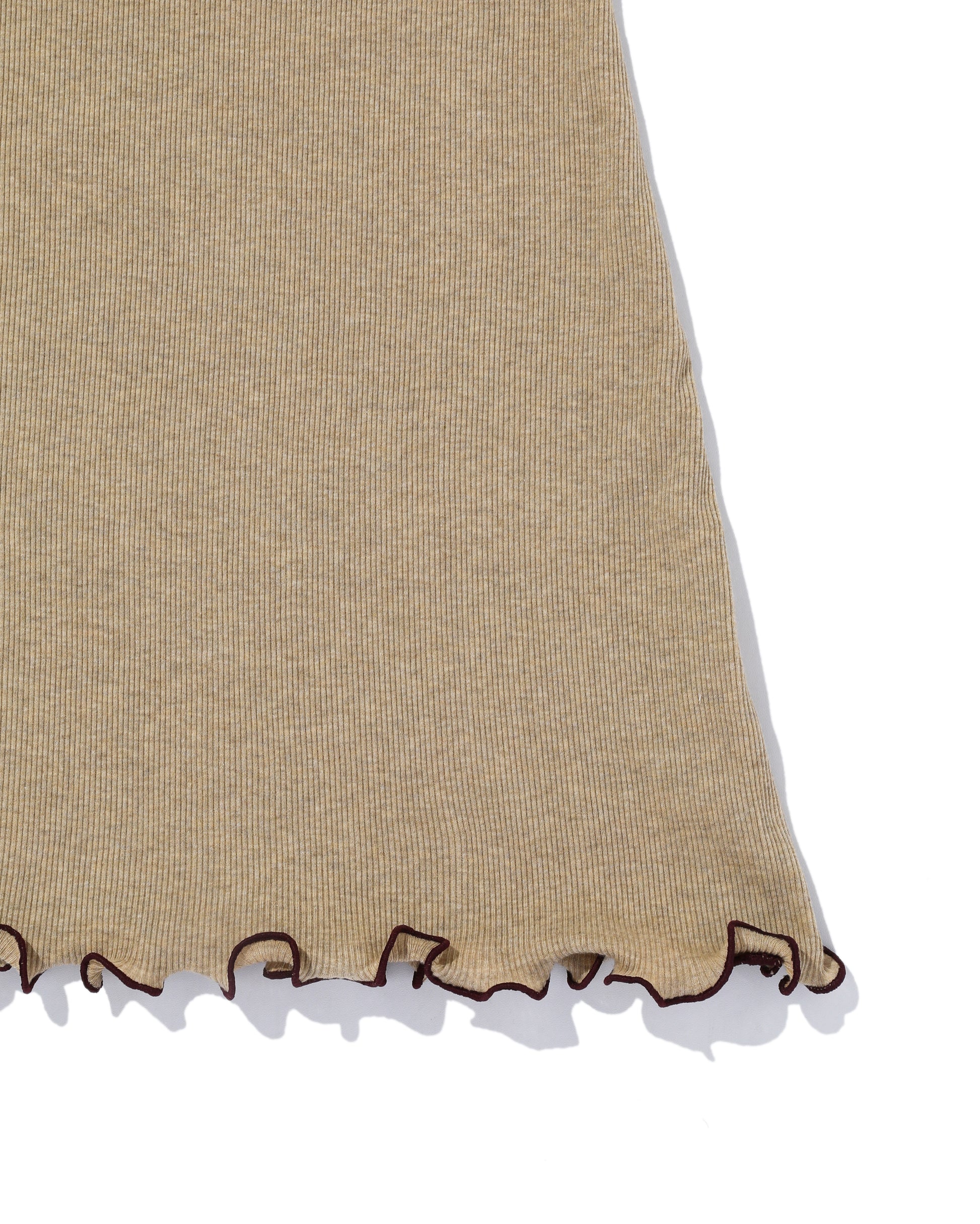 華奢な衿周りのカッティングと、裾の配色メローステッチがさりげないpointに…